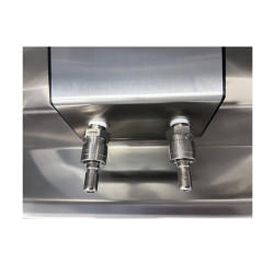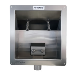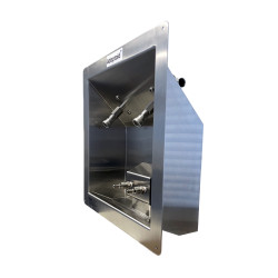 Get a Quote Download the Brochure Get our Product CatalogueStainless steel wall-mounted sink with two paired pure after supply connections and a dual connection to an air-gap drainage block.