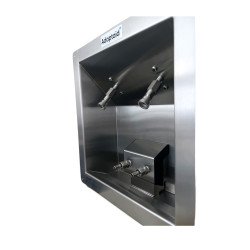 This stainless steel wall-mounted station has been redesigned down to the smallest detail to provide a reliable and durable solution for dialysis centers. Thanks to the separation of purified water supply and wastewater drainage connections, this station provides filtered water that helps protect patients from infections and staff from potential contamination.